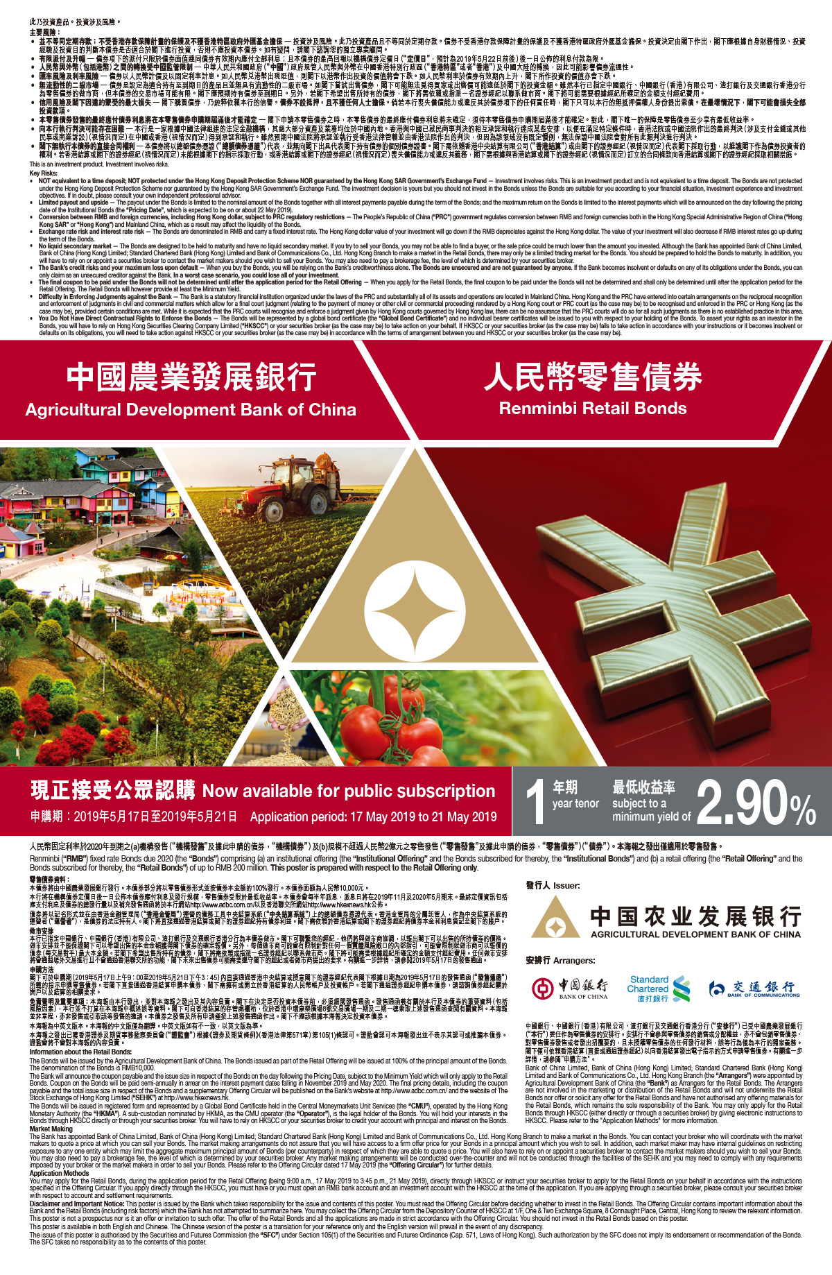 中國農業(yè)發(fā)展銀行人民幣零售債券現(xiàn)正接受香港公眾認購 AGRICULTURAL DEVELOPMENT BANK OF CHINA RENMINBI RETAIL BONDS - NOW AVAILABLE FOR HK PUBLIC SUBSCRIPTION