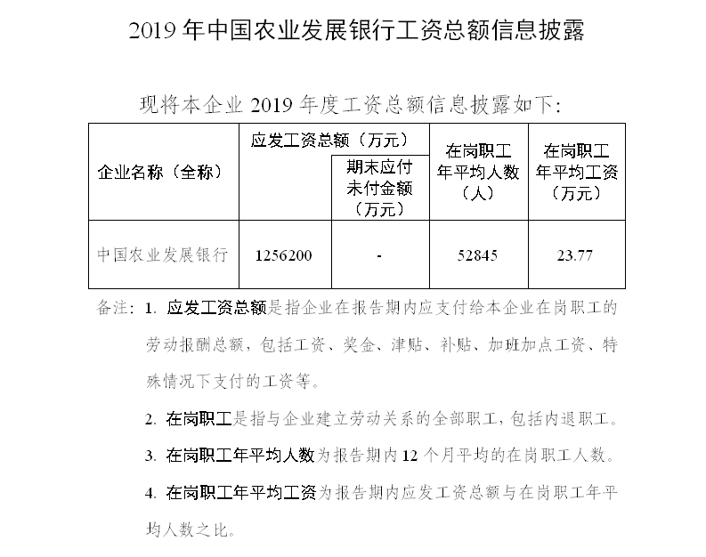2019年中國農(nóng)業(yè)發(fā)展銀行工資總額信息披露