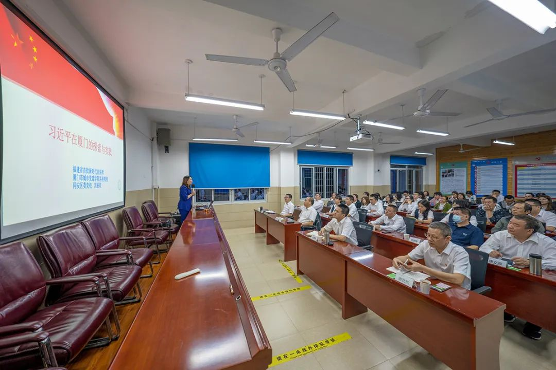 ▲聆聽廈門市委講師團(tuán)特聘教授講授習(xí)近平同志在廈門的探索與實(shí)踐