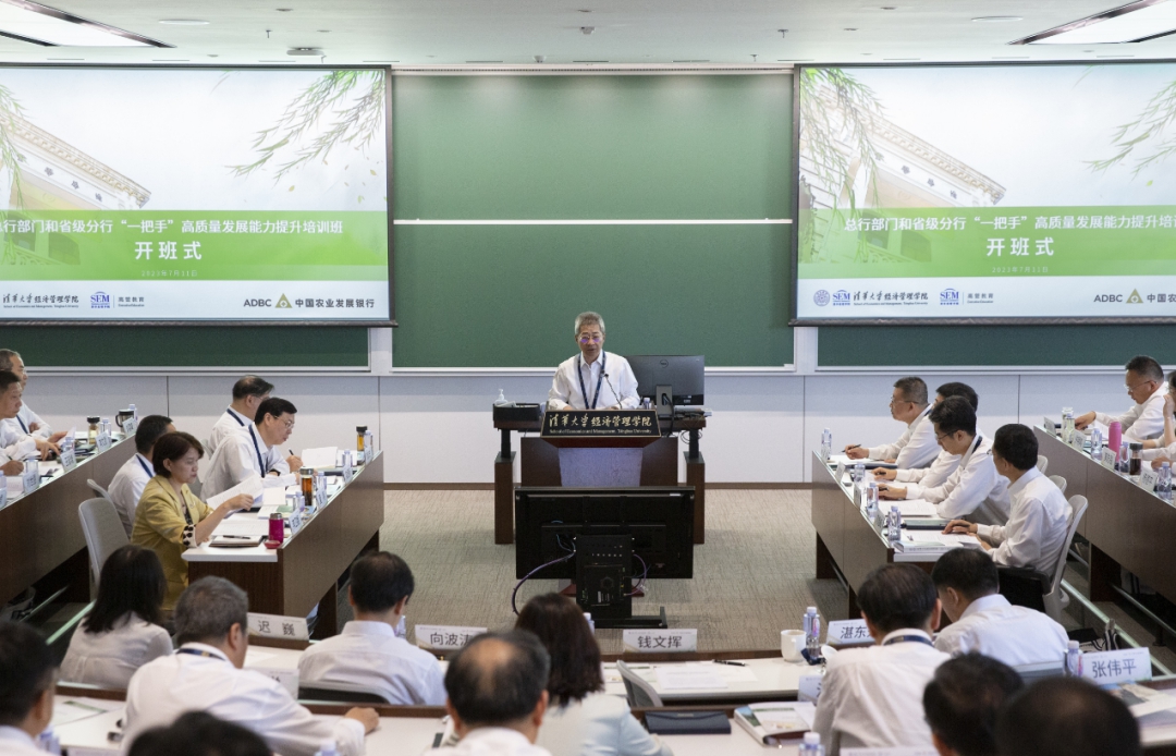 7月11日,農(nóng)發(fā)行總行部門和省級(jí)分行“一把手”高質(zhì)量發(fā)展能力提升培訓(xùn)班在清華大學(xué)正式開班。總行黨委書記、董事長(zhǎng)錢文揮出席開班式并作動(dòng)員講話,黨委副書記、行長(zhǎng)湛東升主持開班式,清華大學(xué)黨委副書記向波濤、清華大學(xué)經(jīng)濟(jì)管理學(xué)院院長(zhǎng)助理遲巍應(yīng)邀出席開班式。本期培訓(xùn)班是在開展學(xué)習(xí)貫徹習(xí)近平新時(shí)代中國(guó)特色社會(huì)主義思想主題教育的背景下,有效推動(dòng)黨的二十大各項(xiàng)決策部署落實(shí)落地的重要舉措,也是扎實(shí)推進(jìn)人才強(qiáng)行工程、助力農(nóng)發(fā)行高質(zhì)量發(fā)展和現(xiàn)代化建設(shè)的關(guān)鍵一環(huán)。