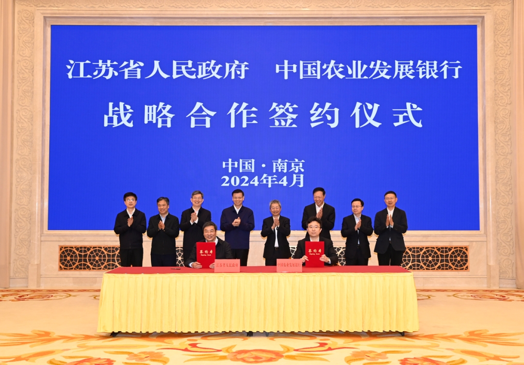 4月16日,中國農(nóng)業(yè)發(fā)展銀行與江蘇省人民政府在南京簽署戰(zhàn)略合作協(xié)議。農(nóng)發(fā)行黨委書記、董事長錢文揮,江蘇省委副書記、省長許昆林出席簽約儀式,農(nóng)發(fā)行黨委委員、副行長徐浩與江蘇省委常委、副省長馬欣分別代表雙方簽署協(xié)議。江蘇省政府秘書長呂德明、農(nóng)發(fā)行戰(zhàn)略總監(jiān)杜彥坤參加。