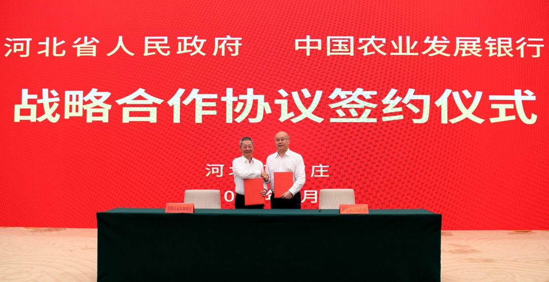 9月24日,中國農(nóng)業(yè)發(fā)展銀行與河北省人民政府在石家莊簽署《推進譜寫中國式現(xiàn)代化建設(shè)河北篇章戰(zhàn)略合作協(xié)議》。農(nóng)發(fā)行黨委書記、董事長錢文揮與河北省委副書記、省長王正譜出席簽約儀式并分別代表雙方簽署協(xié)議。農(nóng)發(fā)行黨委副書記、行長湛東升,河北省政府秘書長朱浩文參加。