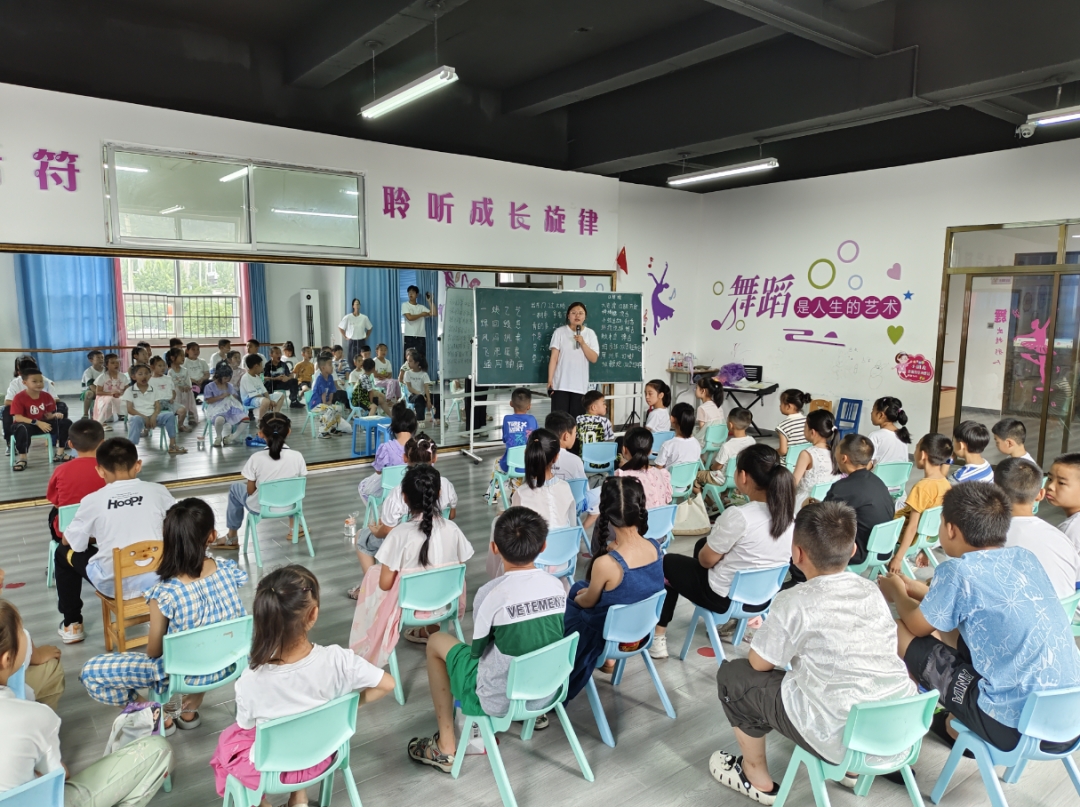 ▲陜西科技大學(xué)與農(nóng)發(fā)行陜西分行青年志愿者在當(dāng)?shù)貎和议_展暑期教學(xué)活動