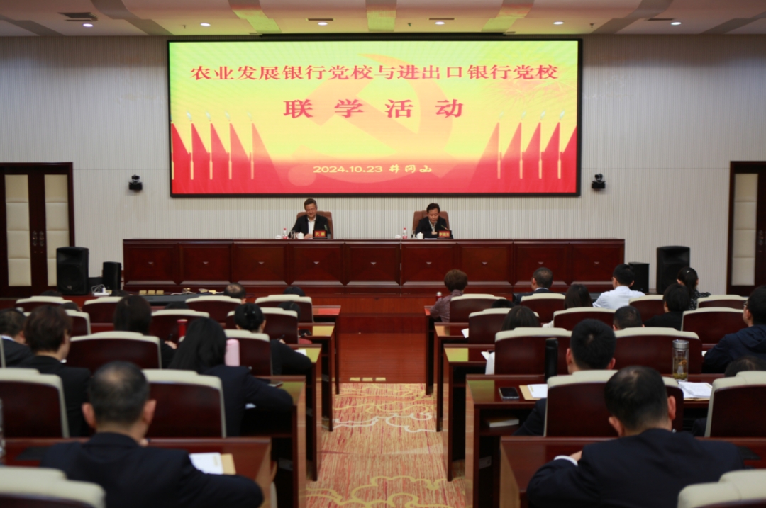 1023日,中國農(nóng)業(yè)發(fā)展銀行黨校中國進(jìn)出口銀行黨校舉行2024年秋季班學(xué)習(xí)貫徹黨的二十屆三中全會(huì)精神聯(lián)學(xué)共建活動(dòng),農(nóng)發(fā)行黨校副校長、進(jìn)出口銀行黨校執(zhí)行副校長出席活動(dòng)。來自農(nóng)發(fā)行井岡山黨校的90名學(xué)員和來自進(jìn)出口銀行的48名學(xué)員參加本次活動(dòng),開展分組座談,并各自派出代表作會(huì)議交流。