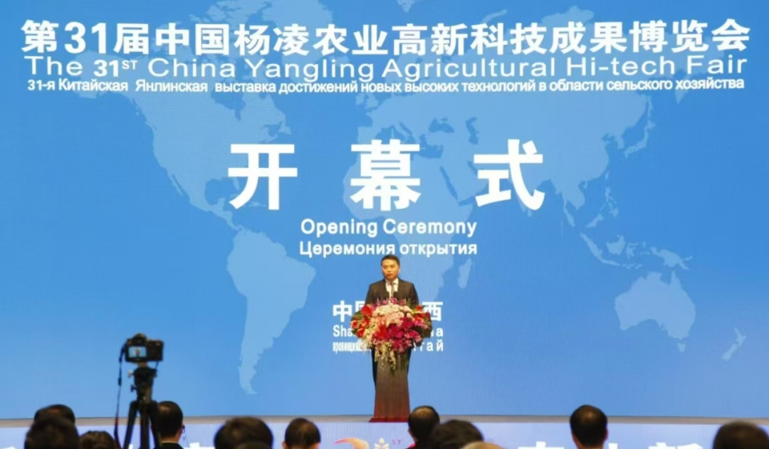 10月25日,農(nóng)發(fā)行黨委書(shū)記湛東升在陜西省楊凌農(nóng)業(yè)高新技術(shù)產(chǎn)業(yè)示范區(qū)出席第31屆中國(guó)楊凌農(nóng)業(yè)高新科技成果博覽會(huì)開(kāi)幕式并致辭。