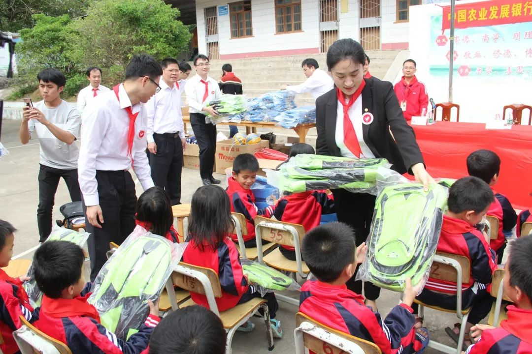 ▲廣東分行在丁堡鎮(zhèn)開展“粵青服務,農(nóng)發(fā)有愛”愛心助學活動