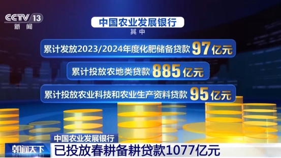 中國(guó)農(nóng)業(yè)發(fā)展銀行最新數(shù)據(jù)顯示,截至今年2月28日,農(nóng)發(fā)行支持春耕備耕累計(jì)投放貸款1077億元。其中,累計(jì)發(fā)放2023/2024年度化肥儲(chǔ)備貸款97億元;累計(jì)投放農(nóng)地類貸款885億元;累計(jì)投放農(nóng)業(yè)科技和農(nóng)業(yè)生產(chǎn)資料貸款95億元,有力地保障春耕備耕的順利進(jìn)行。(時(shí)思寧 王楠,朝聞天下;央視新聞客戶端)