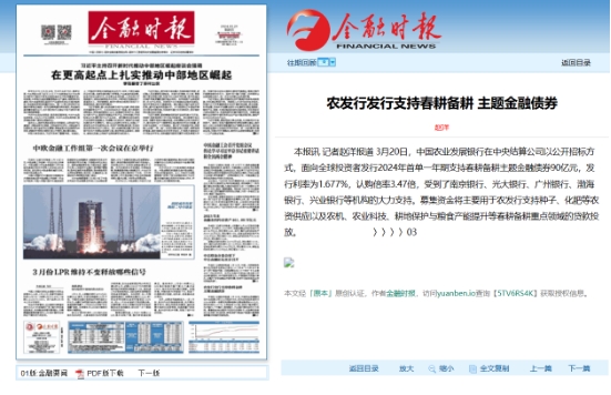 【金融時(shí)報(bào)】農(nóng)發(fā)行發(fā)行支持春耕備耕主題金融債券