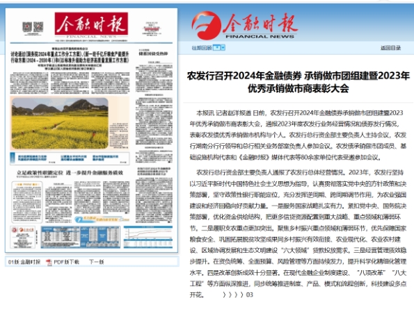 【金融時(shí)報(bào)】農(nóng)發(fā)行召開(kāi)2024年金融債券 承銷(xiāo)做市團(tuán)組建暨2023年 優(yōu)秀承銷(xiāo)做市商表彰大會(huì)