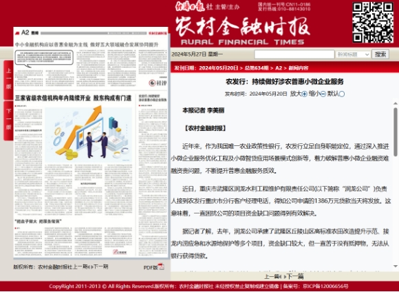 【農(nóng)村金融時(shí)報(bào)】農(nóng)發(fā)行:持續(xù)做好涉農(nóng)普惠小微企業(yè)服務(wù)