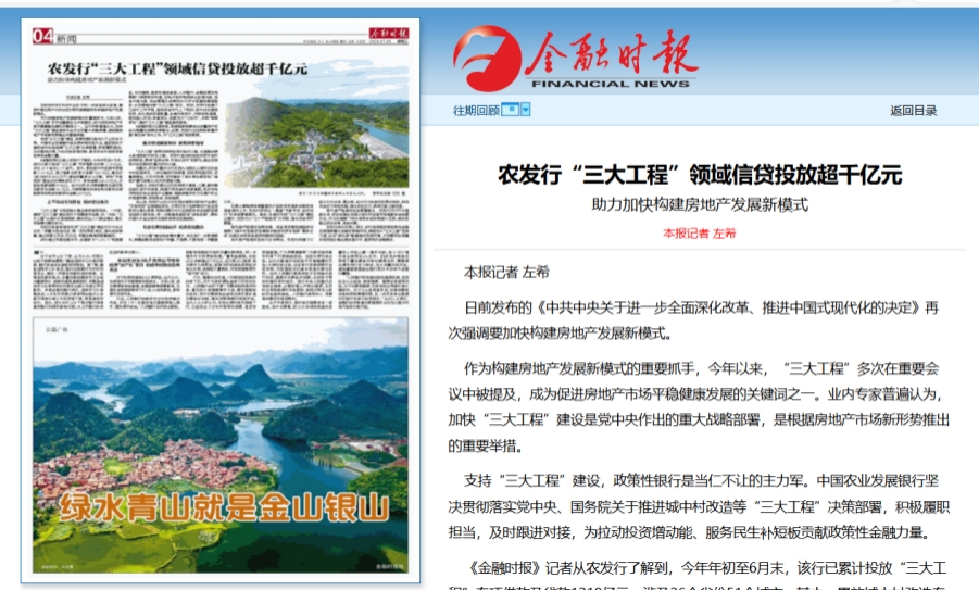【金融時報】農(nóng)發(fā)行“三大工程”領(lǐng)域信貸投放超千億元