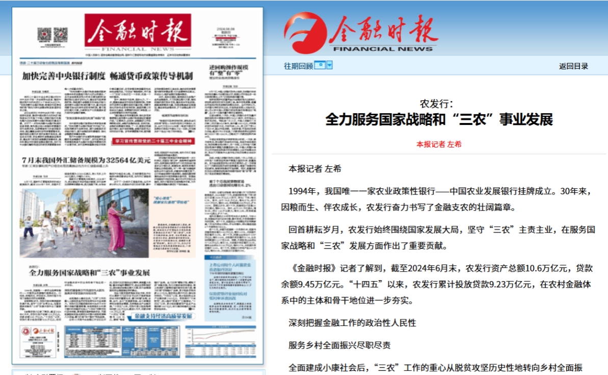【金融時(shí)報(bào)】農(nóng)發(fā)行:全力服務(wù)國家戰(zhàn)略和“三農(nóng)”事業(yè)發(fā)展