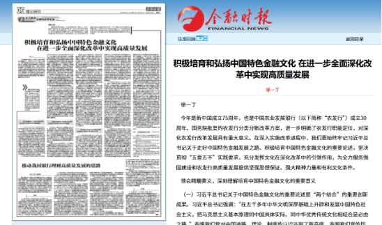 【金融時(shí)報(bào)】積極培育和弘揚(yáng)中國(guó)特色金融文化 在進(jìn)一步全面深化改革中實(shí)現(xiàn)高質(zhì)量發(fā)展