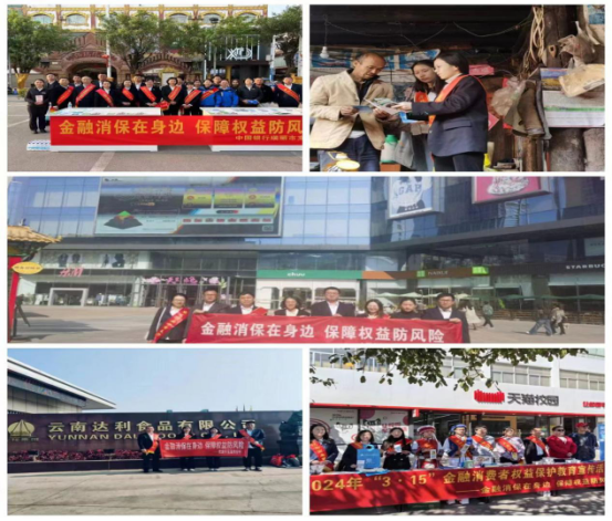 結(jié)合農(nóng)發(fā)行實(shí)際,以“五進(jìn)入”的方式開(kāi)展特色宣傳活動(dòng)。進(jìn)商圈。3月15日,省分行聯(lián)合安寧市支行、宜良縣支行在市中心商圈開(kāi)展以“金融消保在身邊 保障權(quán)益防風(fēng)險(xiǎn)”為主題的金融消費(fèi)者權(quán)益保護(hù)宣傳活動(dòng),向商戶和市民朋友講解金融消費(fèi)者享有的八項(xiàng)基本權(quán)利,有針對(duì)性的開(kāi)展宣傳,引導(dǎo)消費(fèi)者樹(shù)立理性消費(fèi)、理性投資觀念。進(jìn)鄉(xiāng)村。玉溪市分行、祿豐市支行、祥云縣支行組織人員到鄉(xiāng)村振興掛包點(diǎn)村委會(huì),對(duì)村民進(jìn)行金融消費(fèi)者權(quán)益保護(hù)和防范金融詐騙、網(wǎng)絡(luò)詐騙、反假幣、征信等知識(shí)宣傳,把鄉(xiāng)村振興和金融消保有機(jī)結(jié)合。進(jìn)企業(yè)。曲靖市分行、西雙版納州分行聯(lián)合其他金融機(jī)構(gòu)一起走進(jìn)本地知名企業(yè),開(kāi)展金融消費(fèi)者權(quán)益保護(hù)教育進(jìn)企業(yè)宣傳活動(dòng),為企業(yè)員工普及金融知識(shí)。進(jìn)社區(qū)。瑞麗市支行到瑞麗市姐告國(guó)門社區(qū)、開(kāi)遠(yuǎn)市支行前往景山社區(qū)開(kāi)展義務(wù)宣傳活動(dòng),洱源縣支行組織員工走上街頭,深入社區(qū)、客運(yùn)站進(jìn)行金融知識(shí)宣教,重點(diǎn)做好中老年人群的宣傳工作。進(jìn)校園。大理州分行走進(jìn)大理大學(xué)開(kāi)展金融知識(shí)進(jìn)校園宣傳教育活動(dòng),德宏州分行聯(lián)合當(dāng)?shù)?家金融機(jī)構(gòu)到德宏師范高等??茖W(xué)校開(kāi)展宣傳,通過(guò)學(xué)生輻射家庭、家庭輻射社會(huì),共建誠(chéng)信社會(huì)。通過(guò)集中開(kāi)展“五進(jìn)入”特色宣傳活動(dòng),各級(jí)行集中發(fā)聲,形成宣教合力。