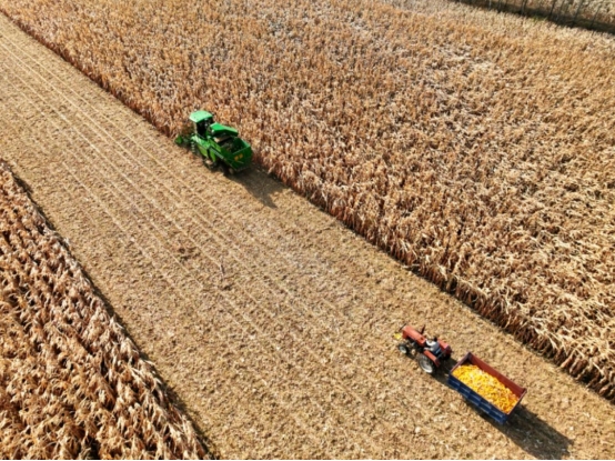 ▲玉米豐收機械化采收場景